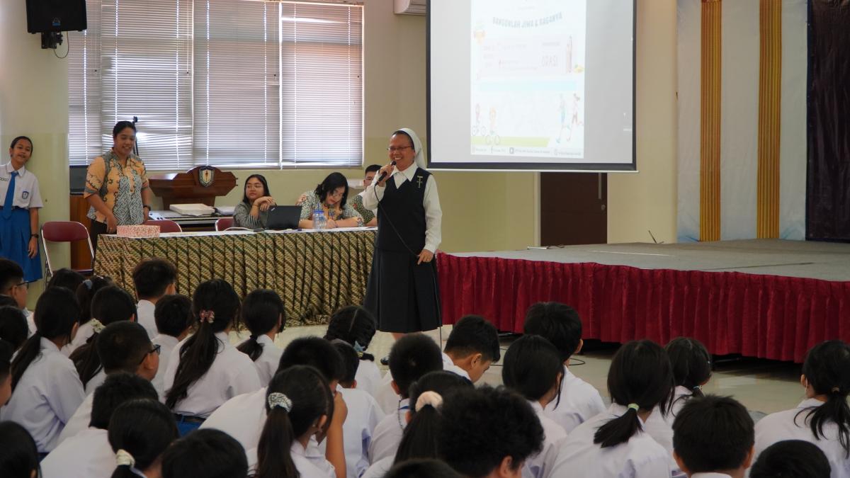 Dalam Orasi ini, adik-adik kelas VII mengajak kakak kelas IX dan bapak ibu guru untuk mau menghargai dan merawat tubuh sebagai upaya untuk mencapai kehidupan yang seimbang dan berkelanjutan✋🏼🤩🚴♀️🏊⛹️♀️