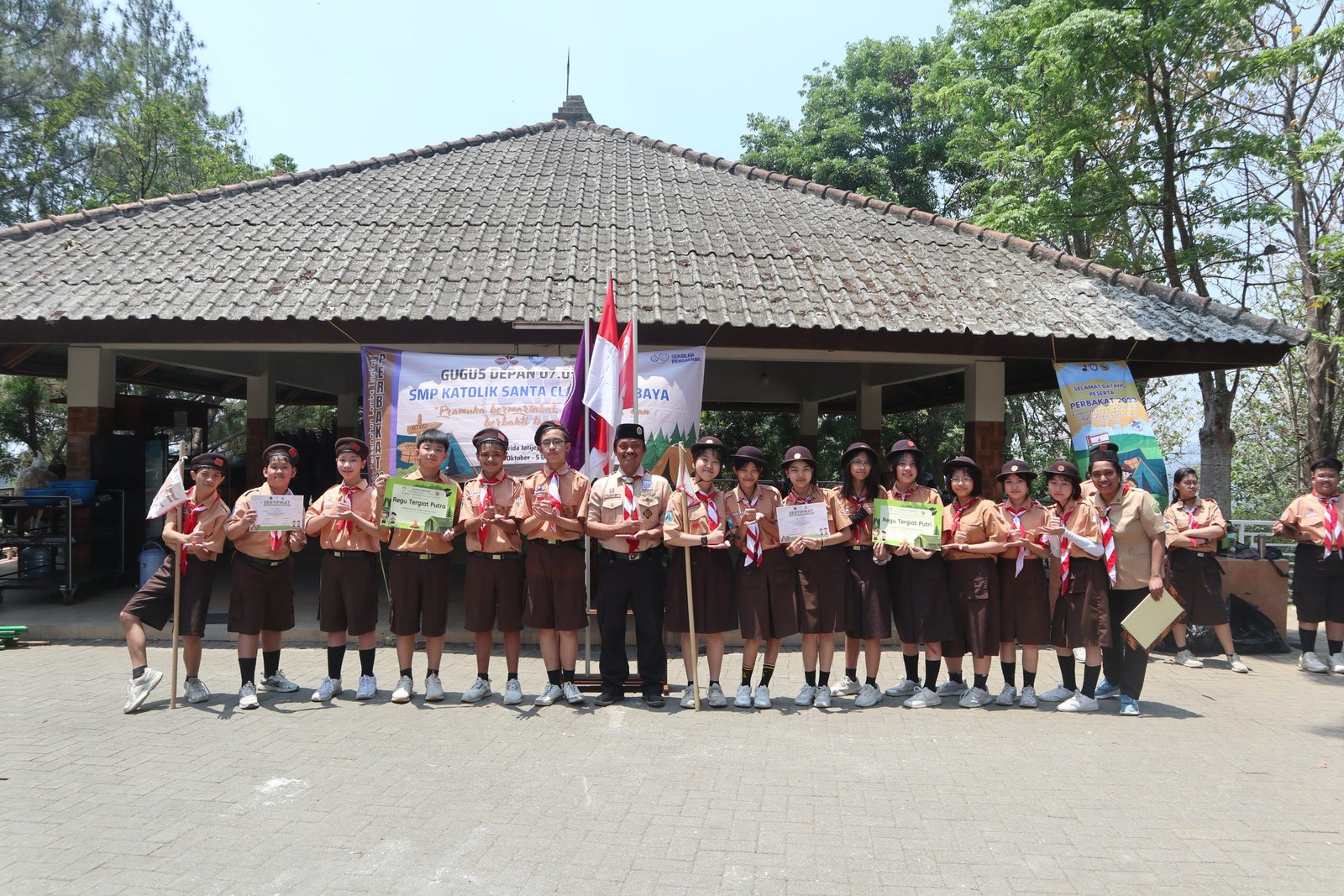 Selasa-Kamis, 3-5 Oktober 2023, peserta didik kelas VIII telah mengikuti kegiatan kepramukaan Perkemahan Lomba Tingkat 1 Penggalang Rakit. Kegiatan yang mengusung tema “Bermartabat, Berdampak, Berbakti tanpa Henti” ini dilaksanakan di Camping Ground Sasana Krida Jati Jejer Trawas Mojokerto selama tiga hari.Hari pertama, para peserta mengikuti rangkaian kegiatan, di antaranya pengarahan dan pembagian tenda, upacara pembukaan, apel sore, lomba pionering dan Misa Ekaristi bersama Romo Agung. Hari kedua, para peserta mengikuti rangkaian kegiatan, di antaranya senam