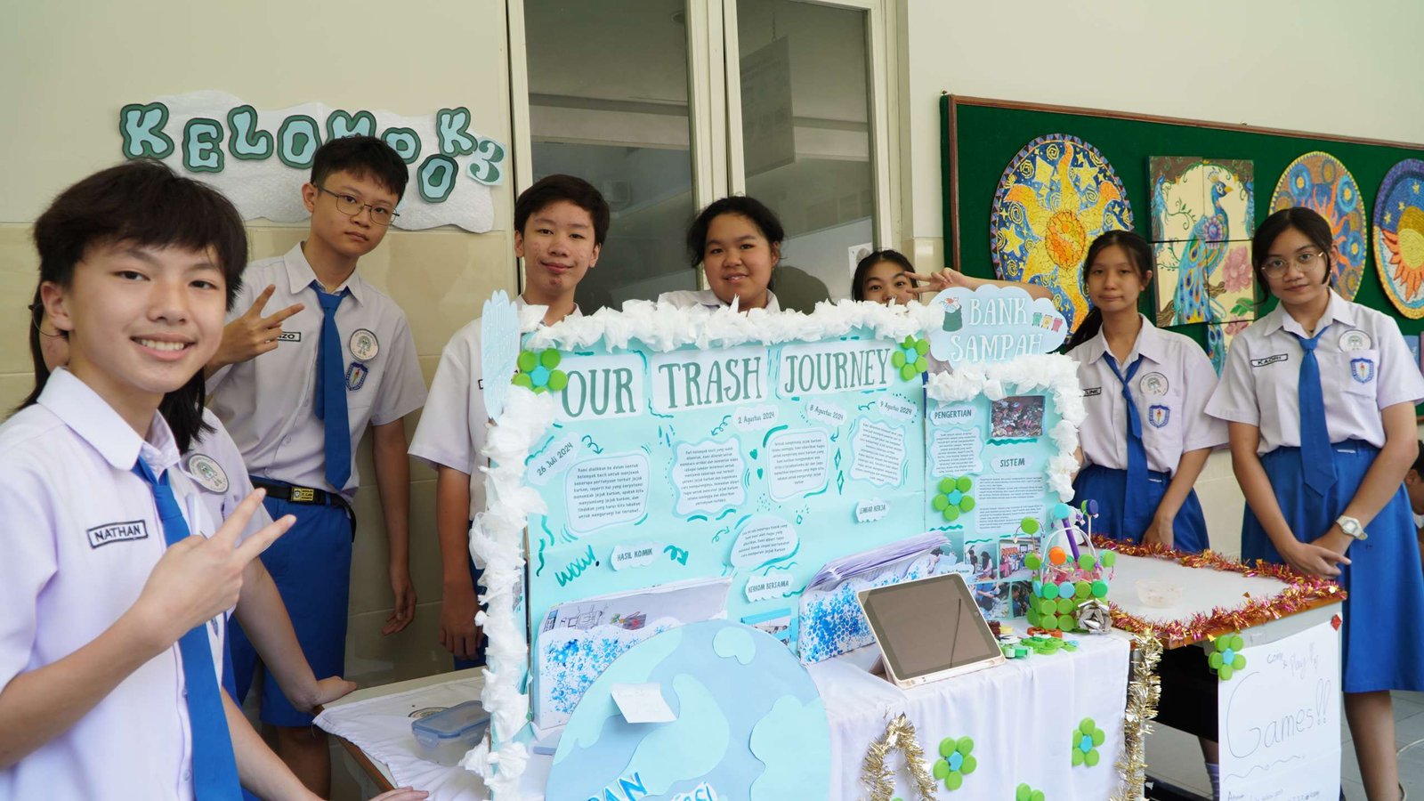 Jumat (6/9) lalu, kakak kelas IX telah menggelar pameran karya P5 dengan tema pertama “Gaya Hidup Berkelanjutan”. Pada pameran ini, kakak kelas IX menampilkan karyanya mengenai Jejak Karbon Kita yang dikemas dalam dua sesi yakni Presentasi dan Pameran Portofolio Karya. Untuk pertama kalinya, kakak-kakak kelas IX mempresentasikan karyanya dengan dihadiri orang tua, bapak ibu guru, dan teman-teman kelas VII dan VIII. Setelah menyaksikan presentasi, pengunjung diarahkan untuk ke stand-stand pameran yang telah disediakan tiap-tiap kelompok.